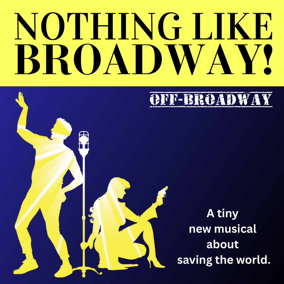 Nothing Like Broadway! is a four-character musical comedy set in a little Off-Broadway cabaret theater. It’s about what happens when two rival international super-spies hide out there (from each other), posing as cabaret singers. Our underdog hero is Milo, the schlubby lighting guy (and the actual lighting guy for the show) who dreams of performing on the stage. Worlds collide, hearts get broken, and our hero ends up saving the world, falling in love, and maybe even singing on that glorious, tiny stage.